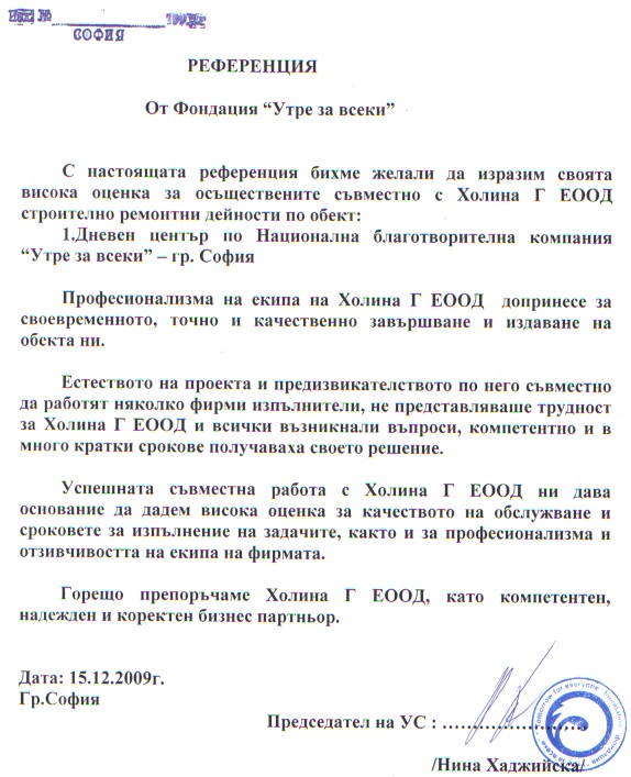 1.2009г. -ИСУЛ - РЕХАБИЛИТАЦИОНЕН ЦЕНТЪР ЗА ВЪЗСТАНОВЯВАНЕ СЛЕД РАК НА ГЪРДАТА
