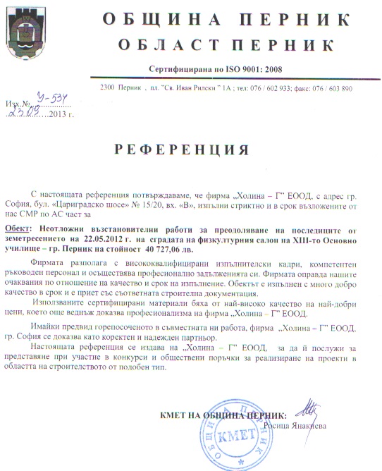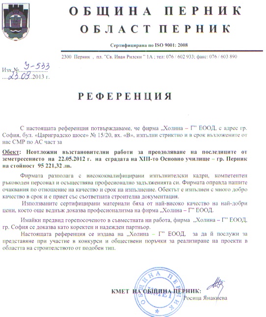2.2012г.- ПЕРНИК СЛЕД ЗЕМЕТРЕСЕНИЯТА от 2012г. - 8-моОУ